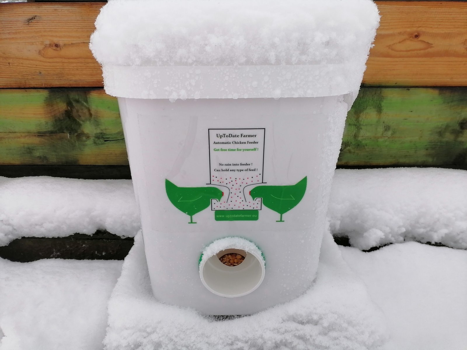 🐔 Hrănitoare pentru 20 de găini – necesită reumplere doar o dată pe săptămână. Design înalt și subțire pentru economisirea spațiului, cu porturi personalizate pentru a împiedica puii și păsările sălbatice să intre.